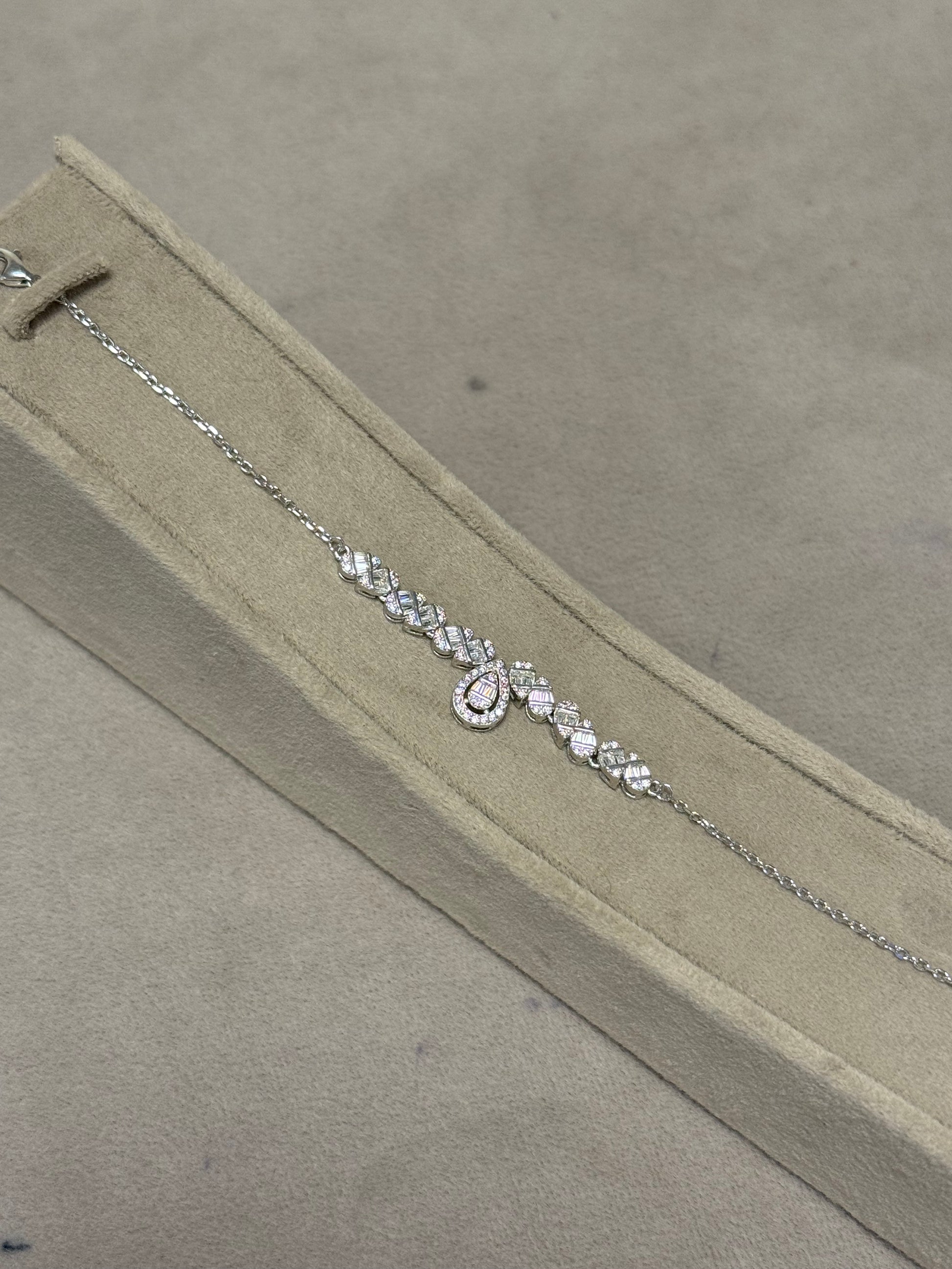 A complete, rhodium-plated 925 silver collection featuring a necklace, matching tops (earrings), ring, and bracelet. The combined weight of 24 grams guarantees a luxurious, quality feel.