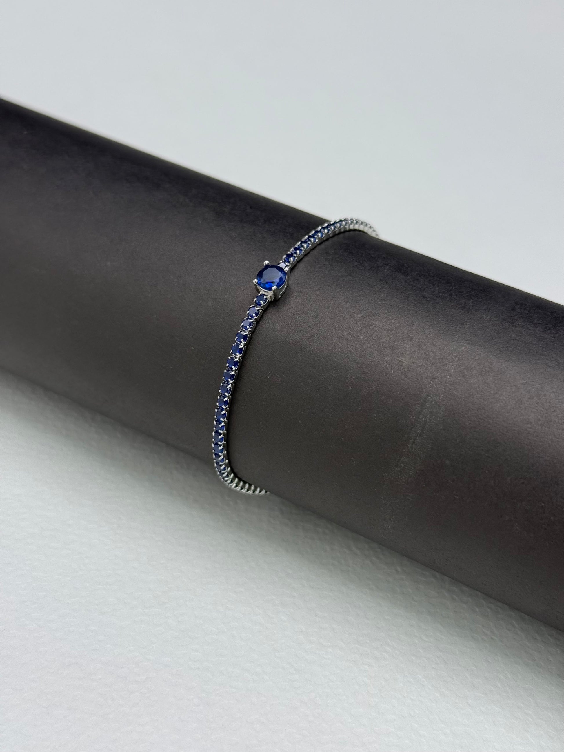 Elegant and timeless, this bracelet features a delicate string of blue gems for a touch of sophistication.