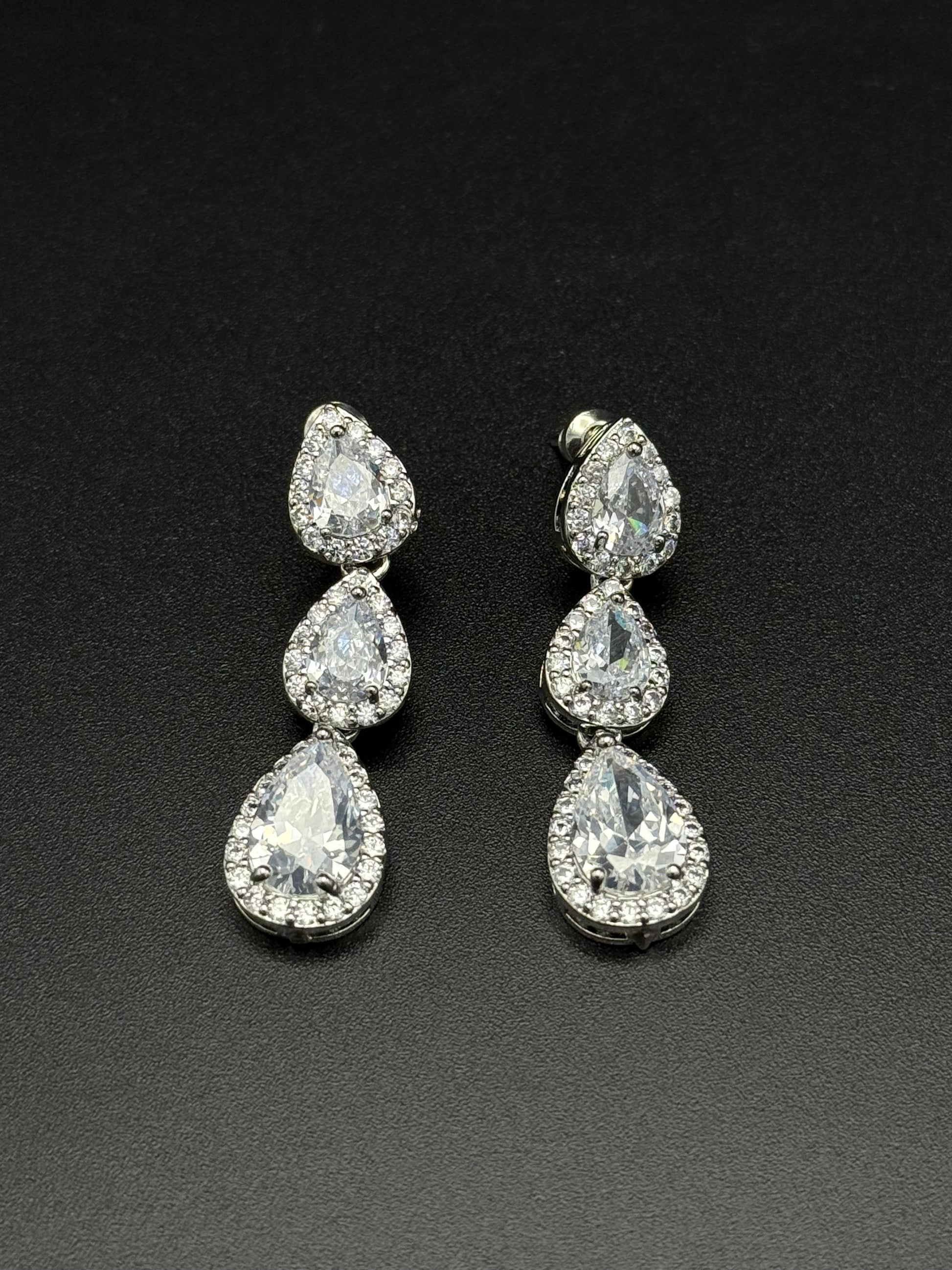Radiate elegance with the Celeste Teardrop Necklace Set, featuring a dazzling necklace and matching earrings adorned with shimmering teardrop-cut crystals. Each piece is delicately surrounded by a halo of smaller stones, creating a timeless and luxurious sparkle—perfect for weddings, formal events, or any special occasion.