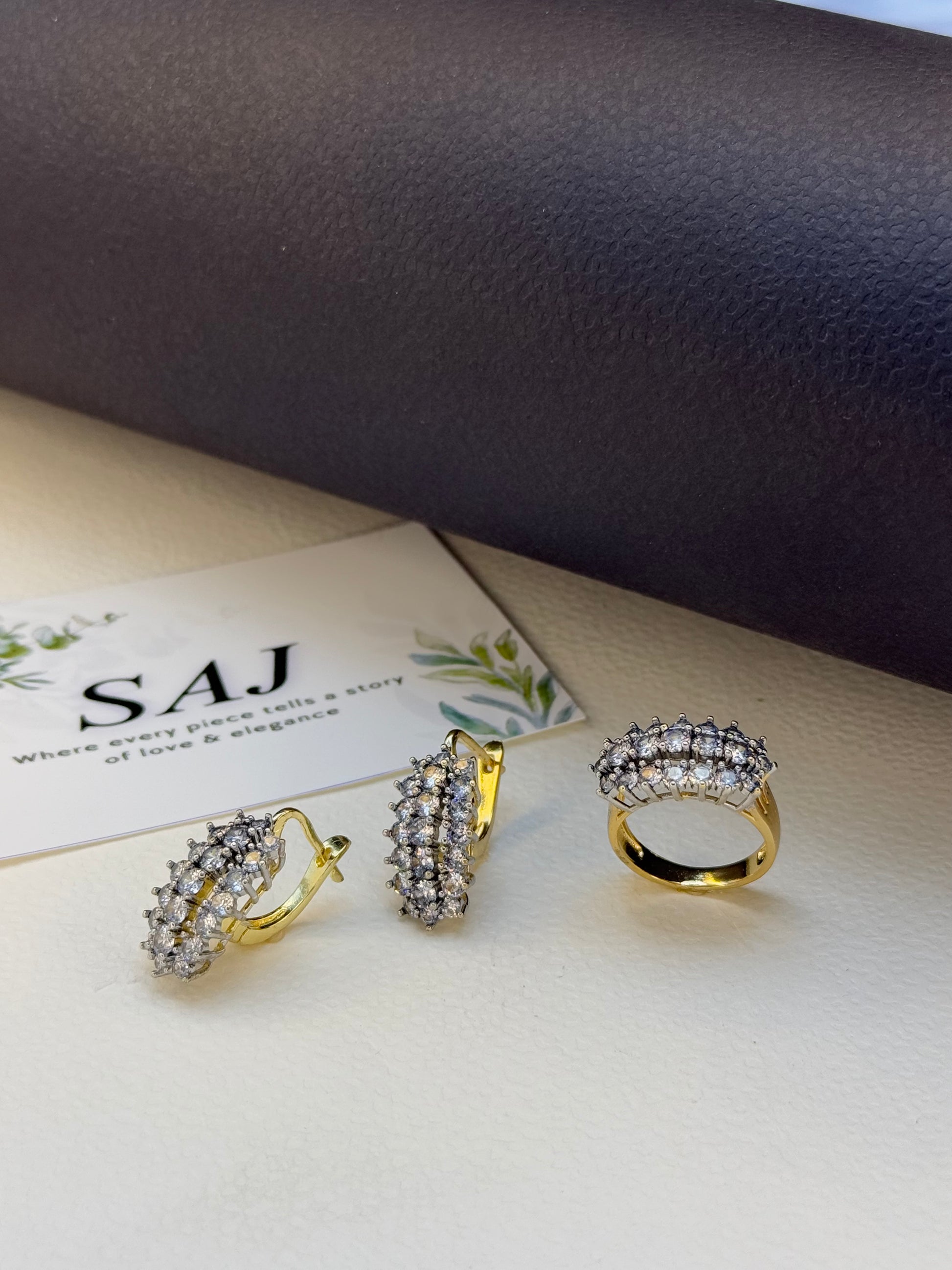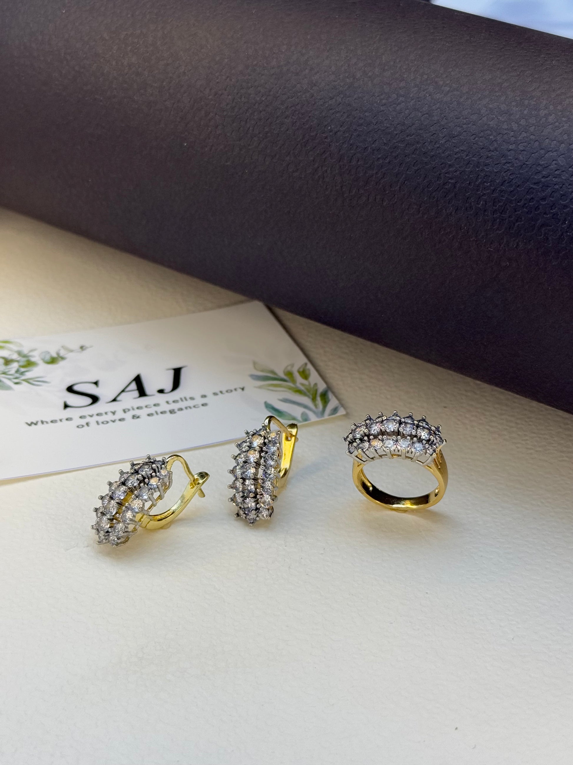 Elevate your elegance with the Eterna Glow Set, featuring finely crafted gold-plated earrings & ring that radiate timeless beauty. Perfect for special occasions or everyday luxury.