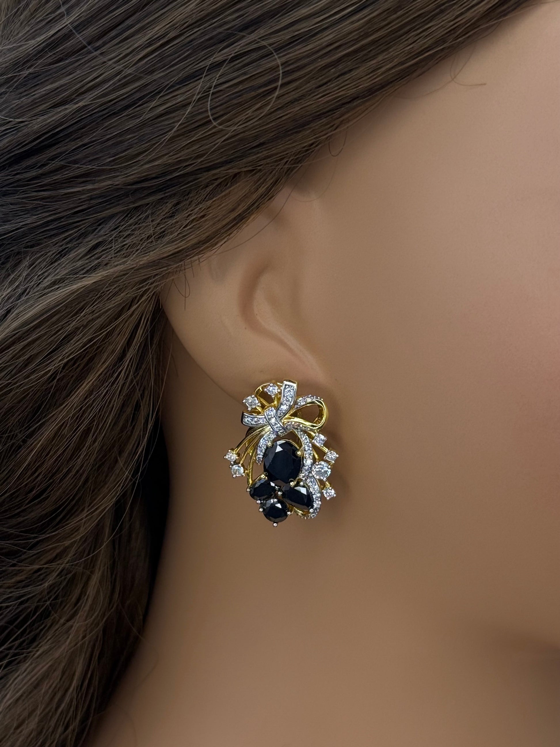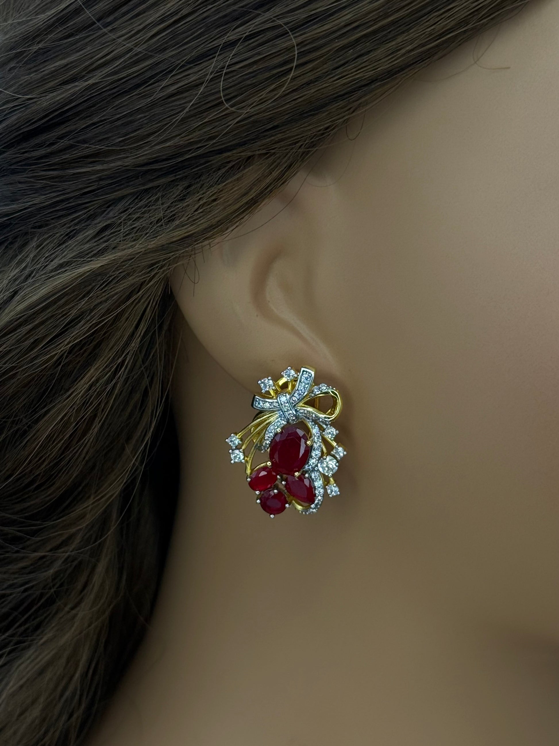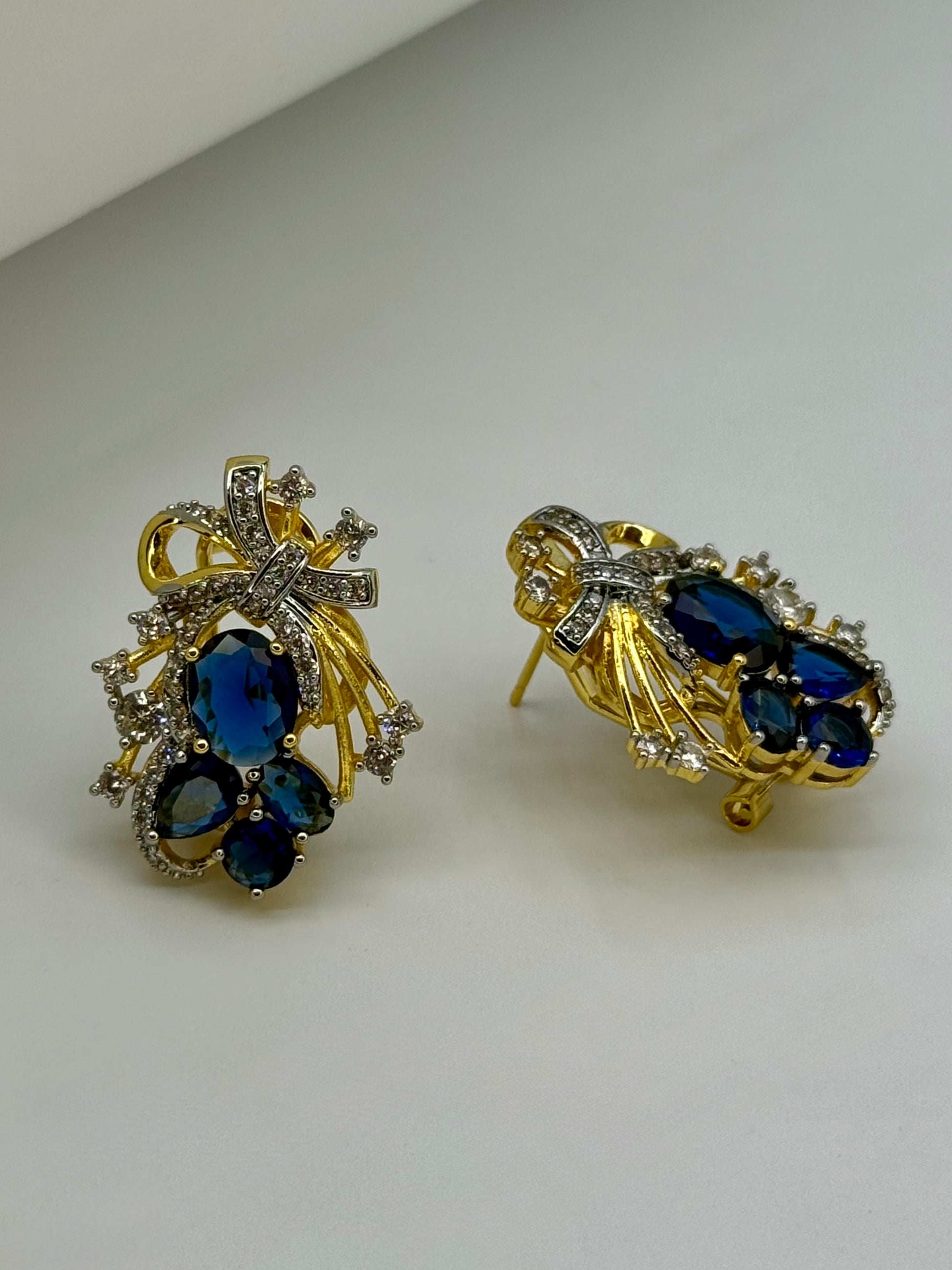 Goldplated earrings featuring deep marquise and pear-cut stones, accented with a graceful ribbon design and delicate zircon detailing. A sophisticated style that can be customized in any colour of your choice.