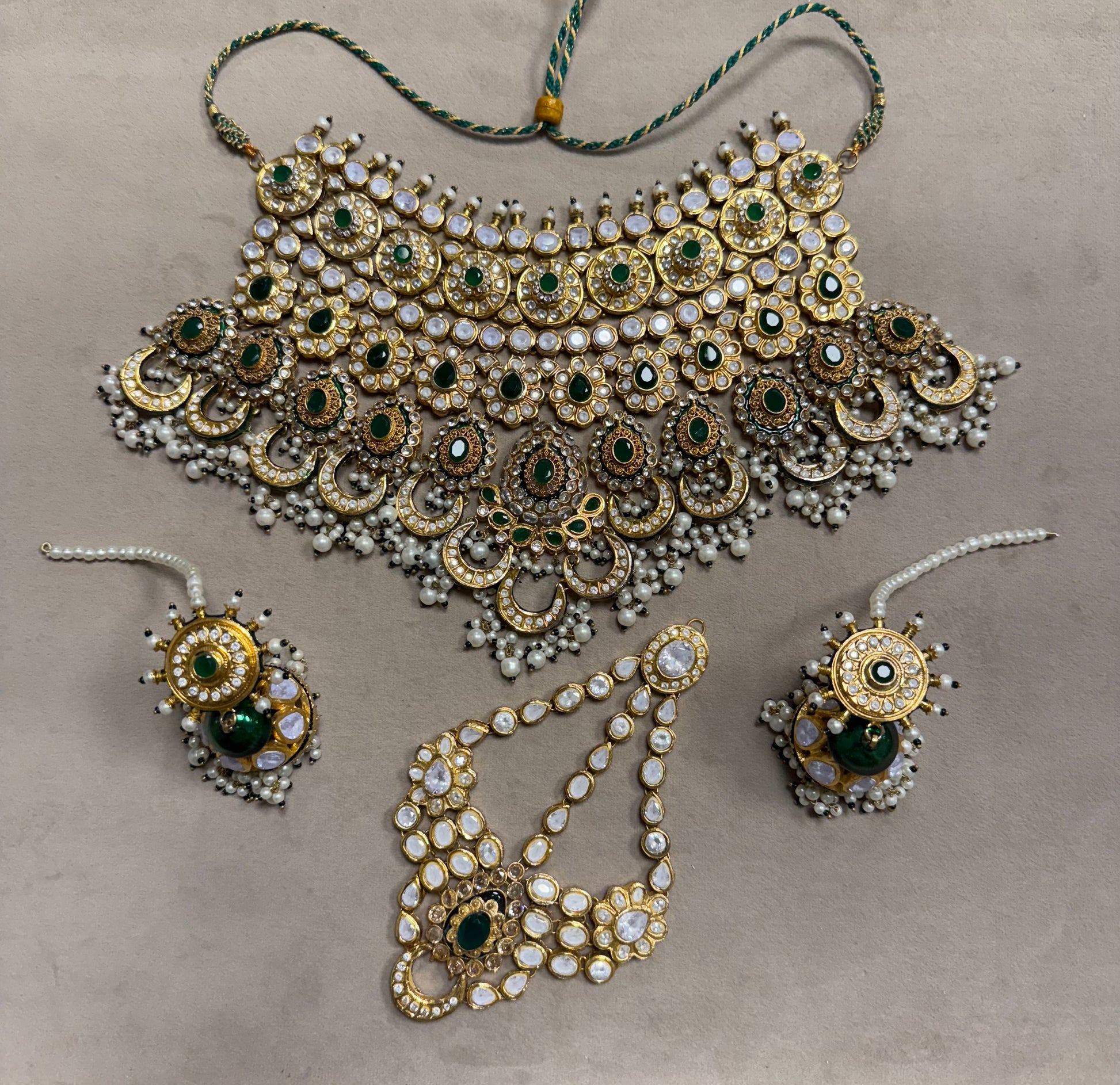 Gutka Kundan Green Meena Bridal Set-Bs65