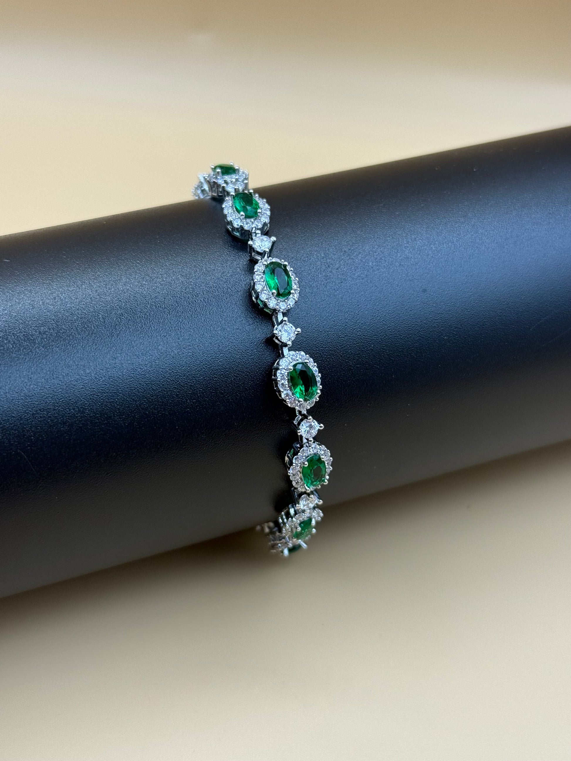 A graceful blend of nature’s hues, this bracelet features enchanting green, pink, and blue stones encircled by delicate zircon halos. Designed to evoke floral charm and elegance, it’s perfect for both festive and formal occasions.