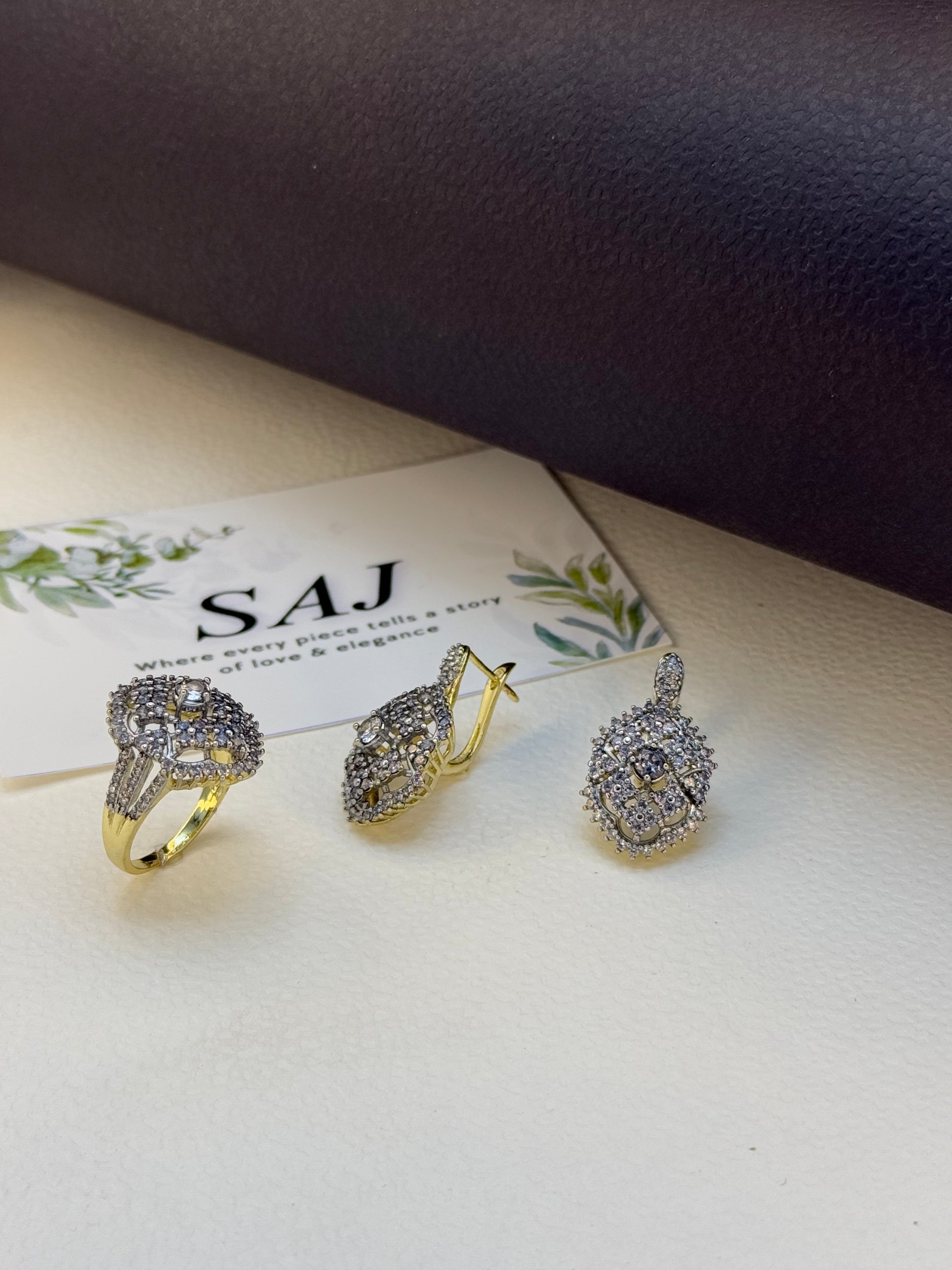 Inspired by moonlit elegance, the Luna Luxe Set features gold-plated earrings and ring that add a soft, enchanting glow to your style.