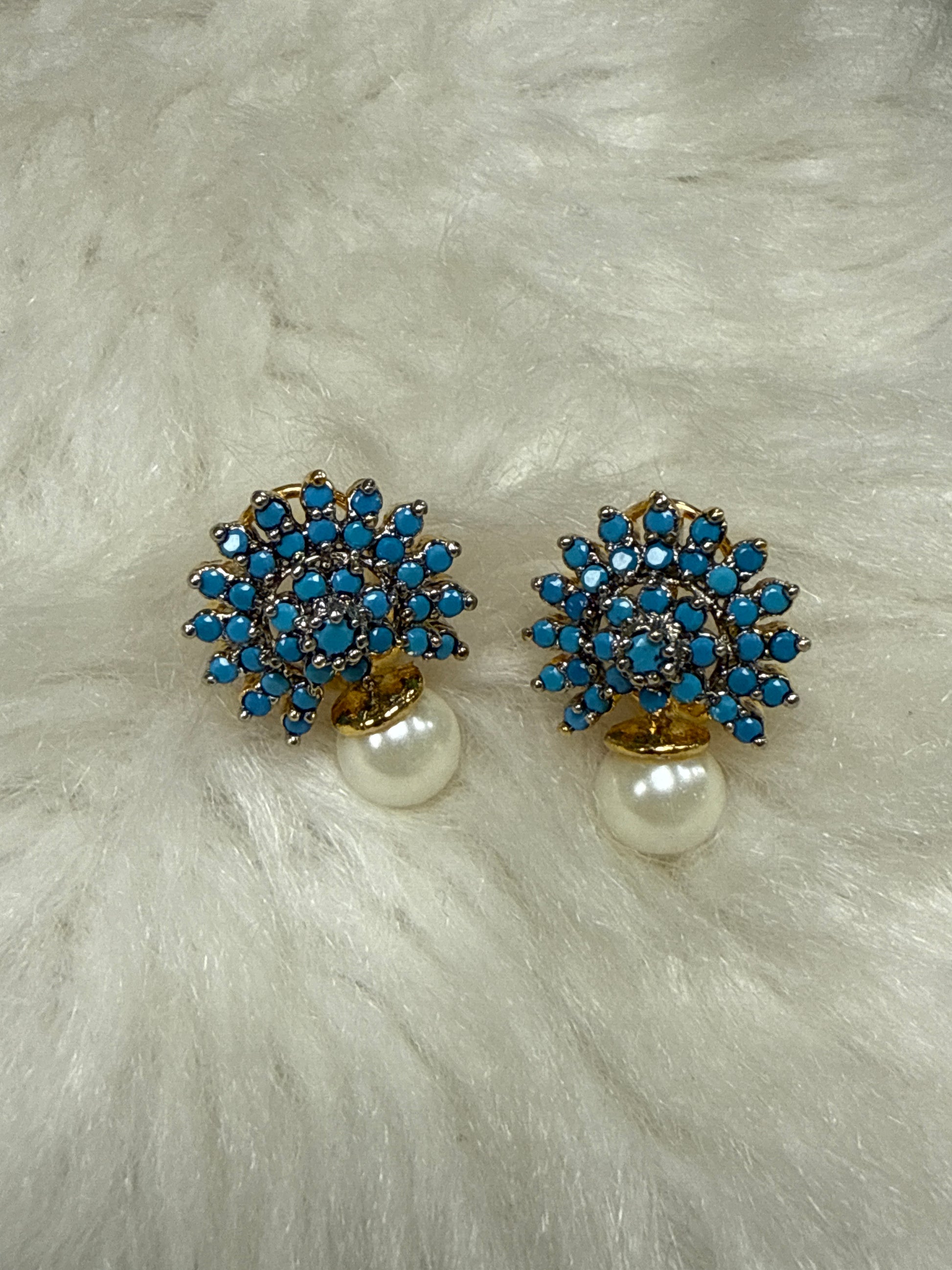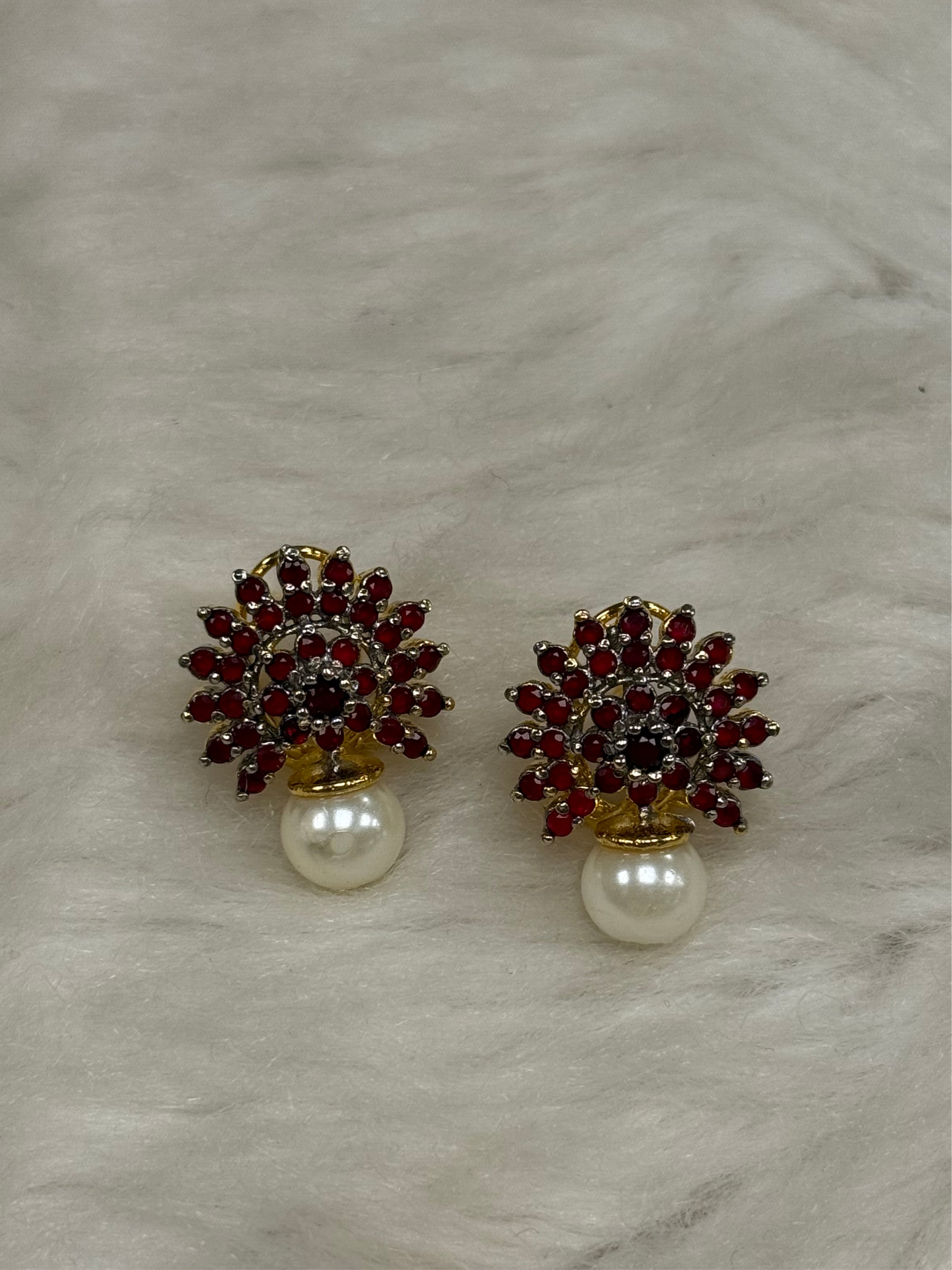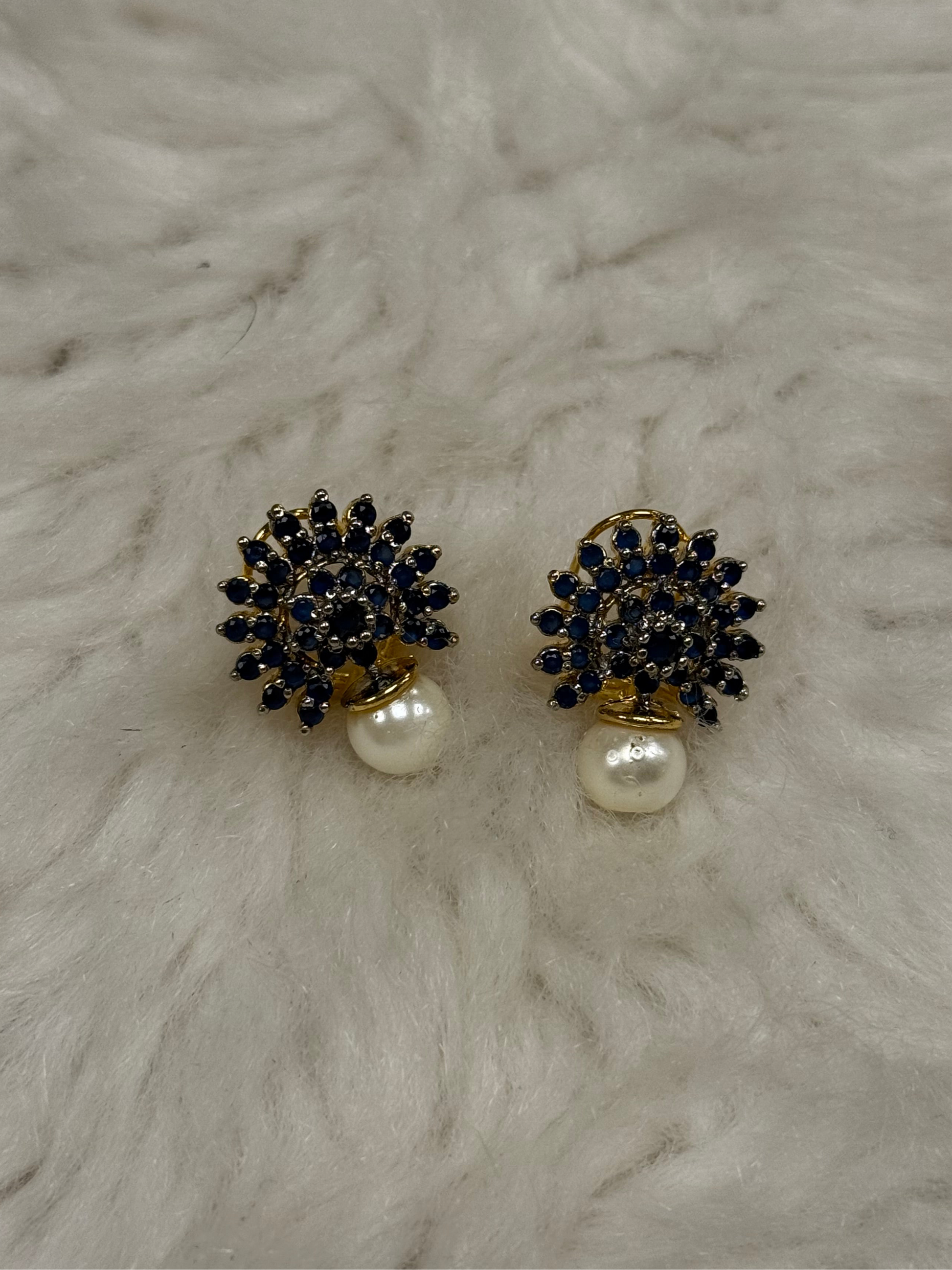 Elegant floral studs adorned with shimmering stones and a classic pearl drop for a timeless charm.