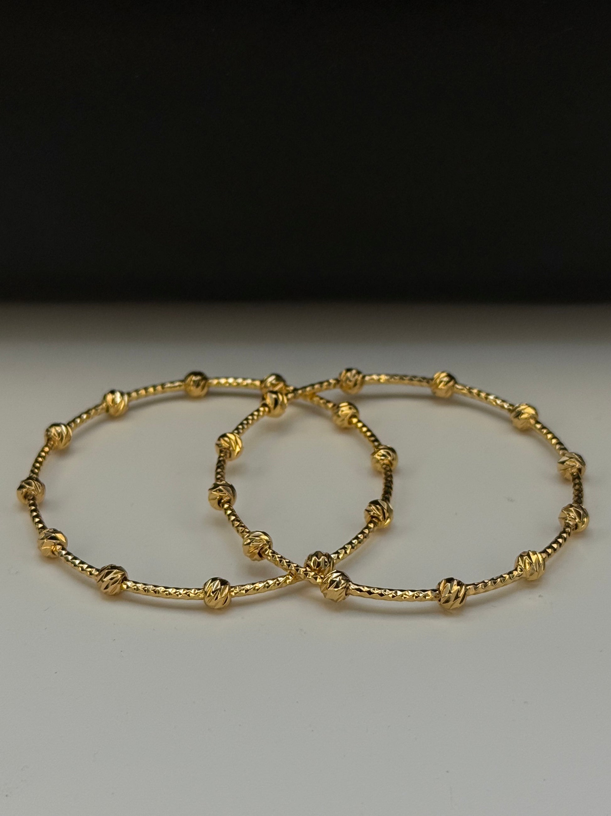 Elegant gold-plated bangles featuring textured bars and intricate knot detailing — a timeless design that adds graceful charm to any look.